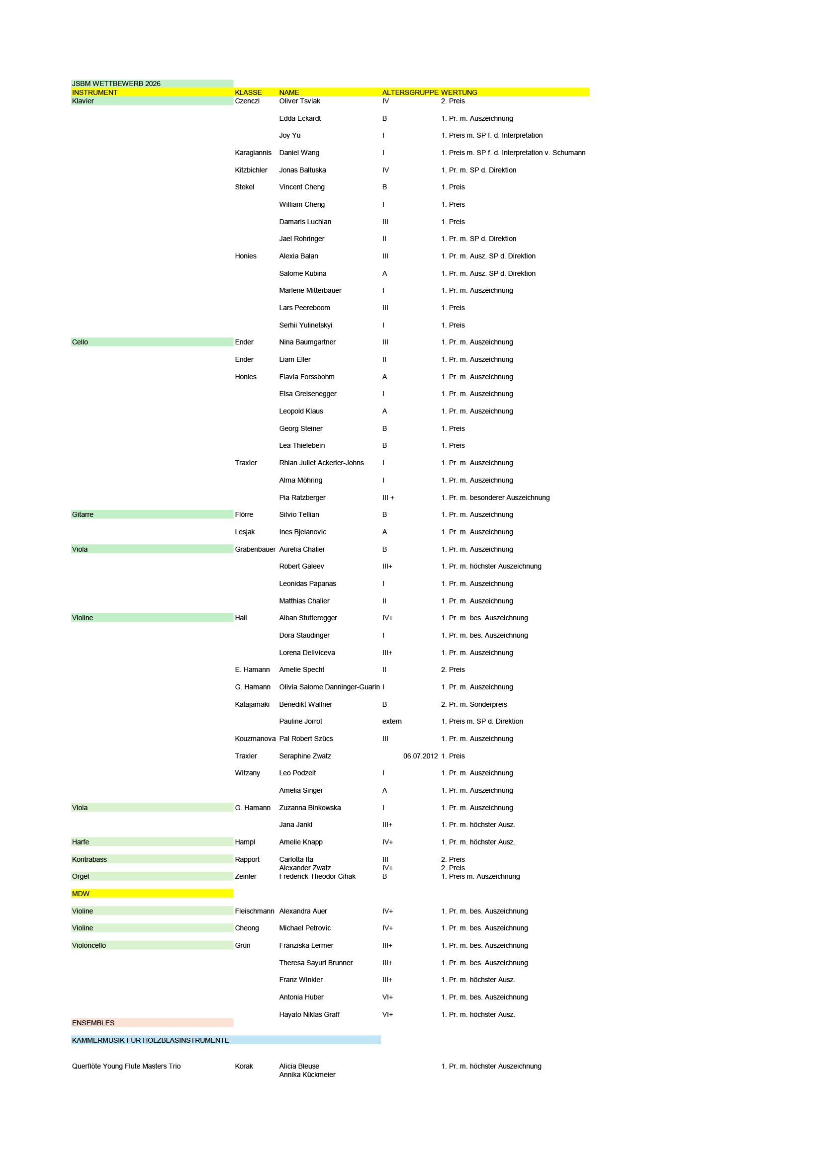Hier die ausgezeichneten Ergebnisse des JSBM Wettbewerbs 2026! Wir gratulieren ganz herzlich!